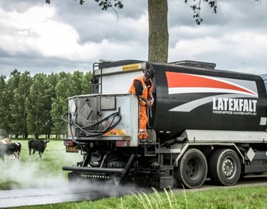 Tai Nyderlandų įmonėje sukurta technologija. Grindų klojimui skirtas mišinys ruošiamas darbų atlikimo vietoje. Naudojamos rišančiosios medžiagos - bitumo – polimerinės emulsija ir cementas bei užpildai - granitinė skalda ir smėlis. Toks mišinys yra plastiškas bei turi puikias sukibimo savybes. Dažniausiai dažomų grindų dangų storis siekia iki 1 mm, liejamų – iki kelių mm, betono – nuo 6 cm. Vidutinis Latexfalt grindų storis – 15 mm. Toks storis leidžia užtaisyti visus pagrindo nelygumus, tačiau nedaug iškelia grindų paviršių, lyginant su naujomis betoninėmis grindimis. Tai labai svarbu veikiančioje gamyboje arba dėl papildomų apkrovų rizikos. Grindis „suvedame“ su jau esančiomis „senomis“ grindimis, taip pat jas „privedame“ prie veikiančių įrengimų. Jei ateityje įrengimą perkelsite – vietą po juo užtaisysime tuo pačiu mišiniu.